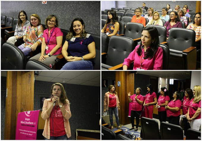 Mais do que uma palestra com conteúdos científicos e estatísticos relacionados à prevenção do câncer de mama, as servidoras do Tribunal do Trabalho da Paraíba (13ª Região) tiveram a oportunidade de conhecer histórias de mulheres diagnosticadas precocemente, mas que venceram a batalha contra a doença. Elas formam o Grupo Mãos que Acolhem, uma Organização não Governamental, cujo propósito social é apoiar pacientes acometidos com a doença e seus familiares durante o tratamento.